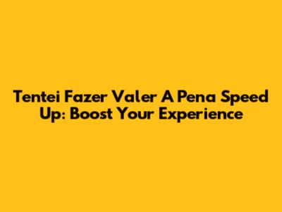 Tentei Fazer Valer A Pena Speed Up: Boost Your Experience