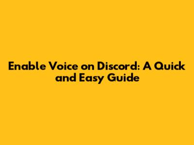 Step-by-Step Guide to Enabling Voice on Discord