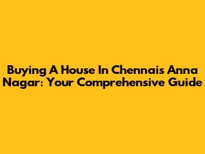 Buying A House In Chennai's Anna Nagar: Your Comprehensive Guide