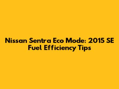 Nissan Sentra Eco Mode: 2015 SE Fuel Efficiency Tips