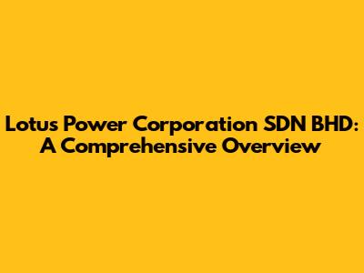 Lotus Power Corporation SDN BHD: A Comprehensive Overview