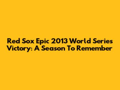 Red Sox Epic 2013 World Series Victory: A Season To Remember
